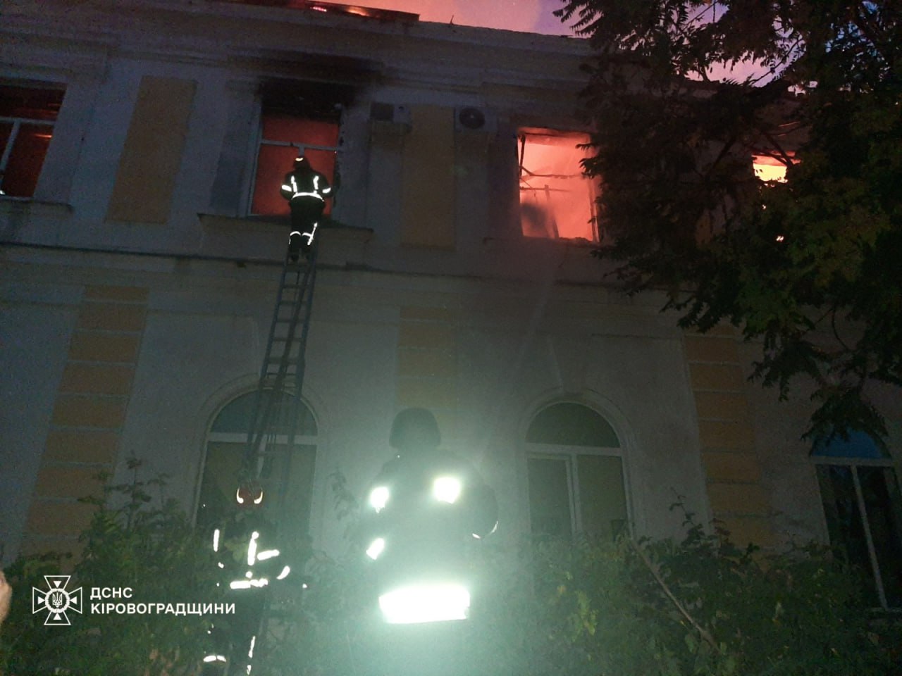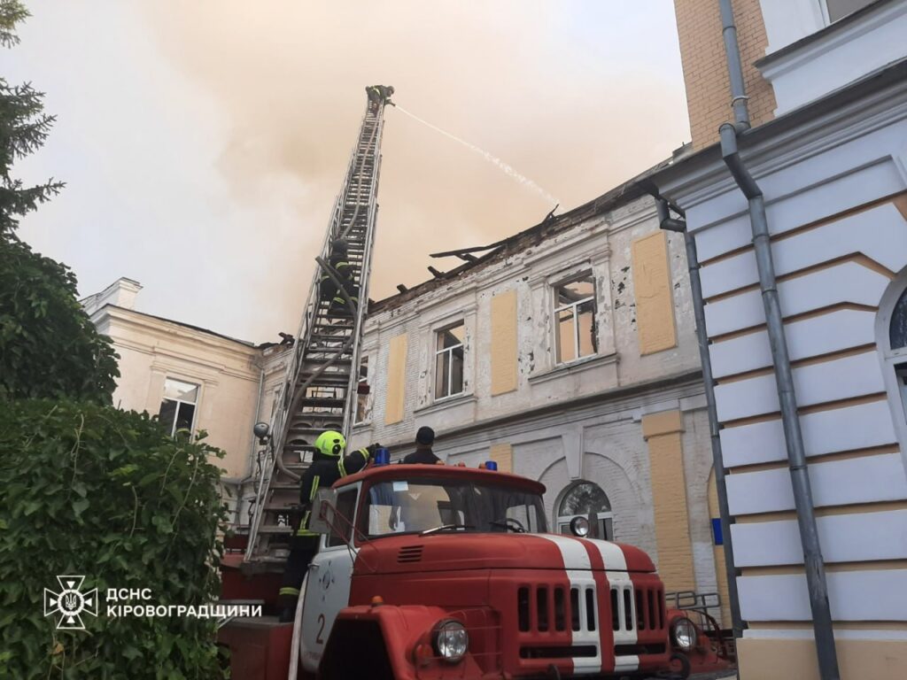 Через атаку шахедами вночі 28 липня у Кропивницькому сталася пожежа у будівлі рятувального загону ДСНС.