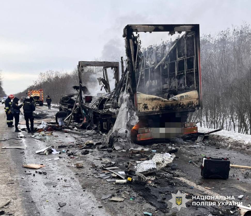 Попередньо, 48-річний водій вантажівки Volvo виїхав на зустрічну смугу, де зіткнувся з автобусом Setra. Після зіткнення вантажівка згоріла вщент.