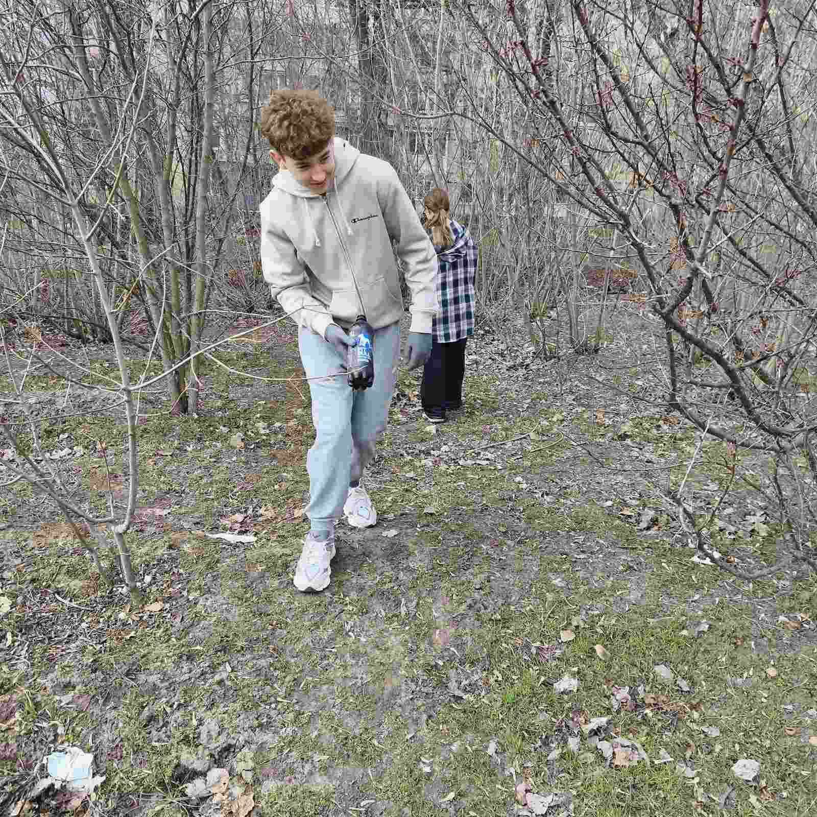 Учні та педагогічний колектив школи навели лад на прилеглій території закладу та вийшли на прибирання зеленої зони міста.