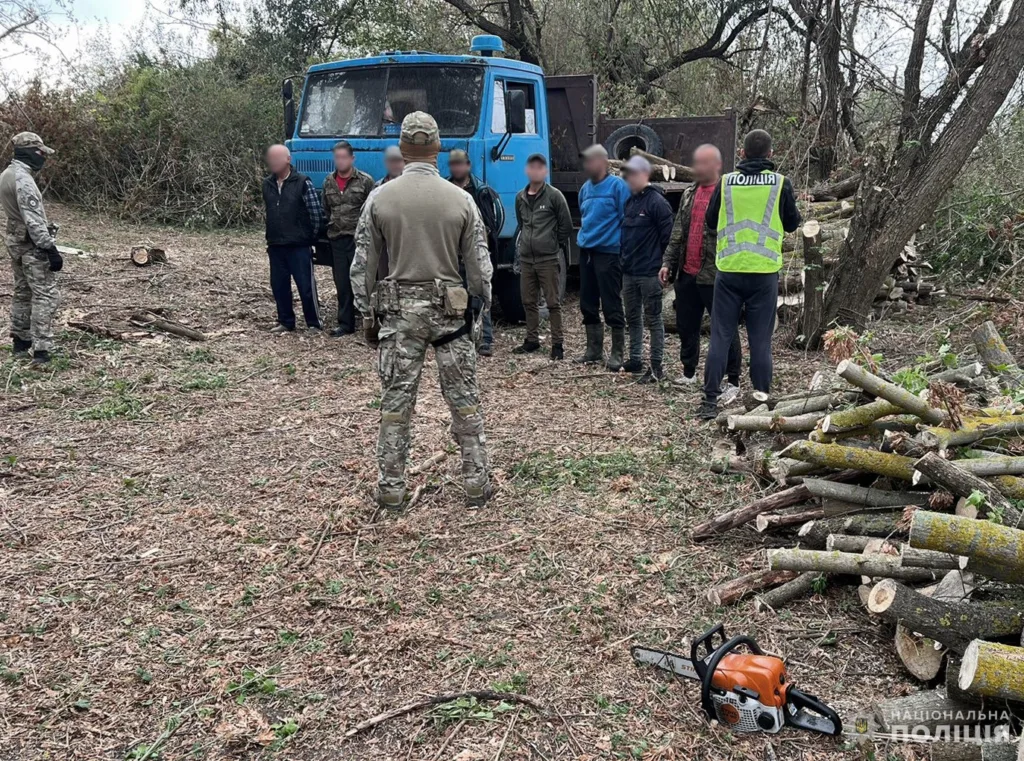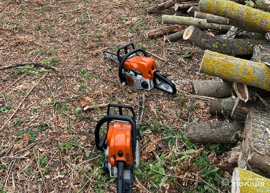 Під час обшуків у злочинців вилучили мобільні термінали, чорнові записи, вантажний автомобіль, а також бензопили та інше приладдя.