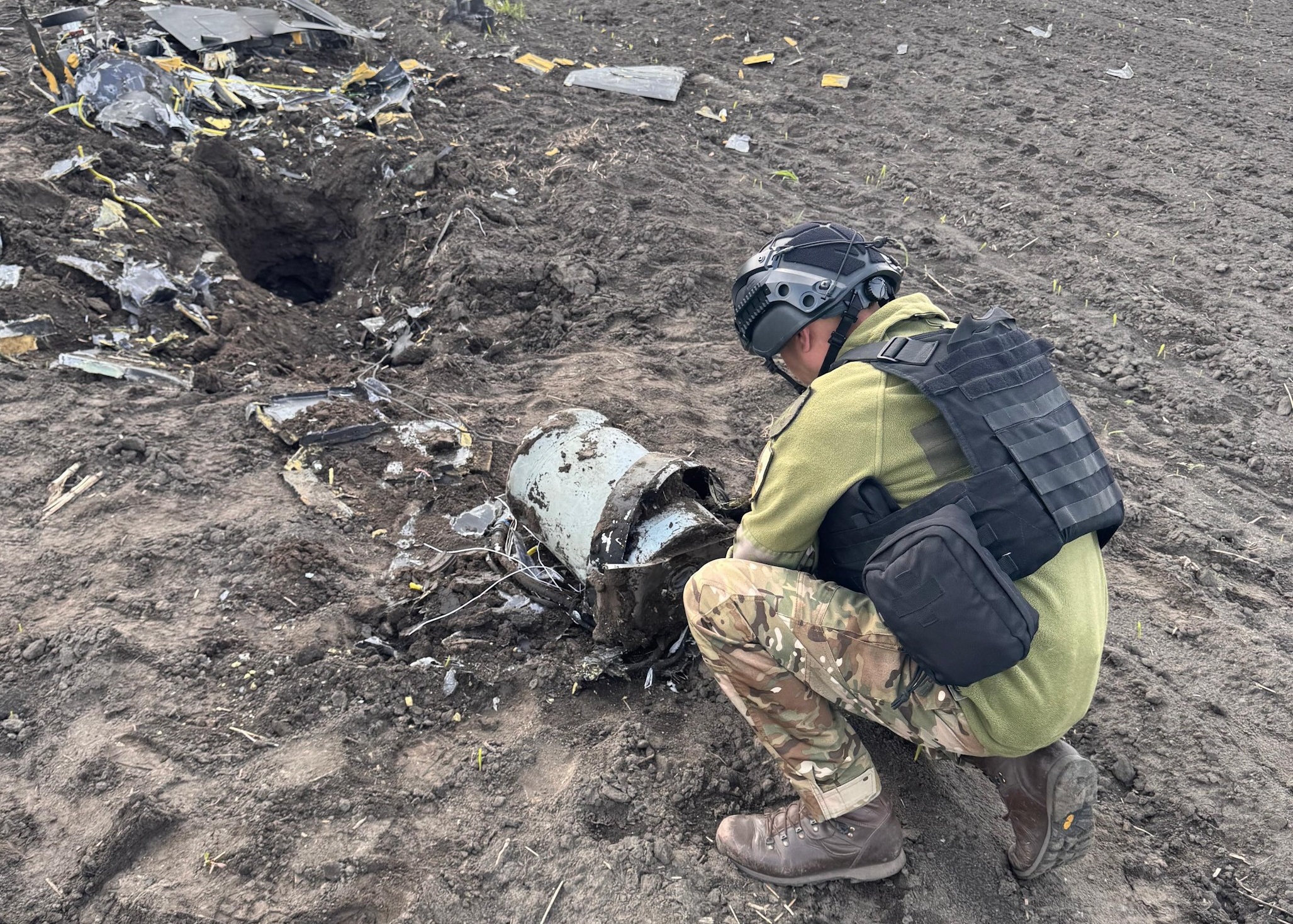 Вибухотехніки обстежили бойову частину дрону вагою 50 кг із термобаричним й уламковим ефектом. Її відкопали вручну та знищили методом контрольованого підриву.
