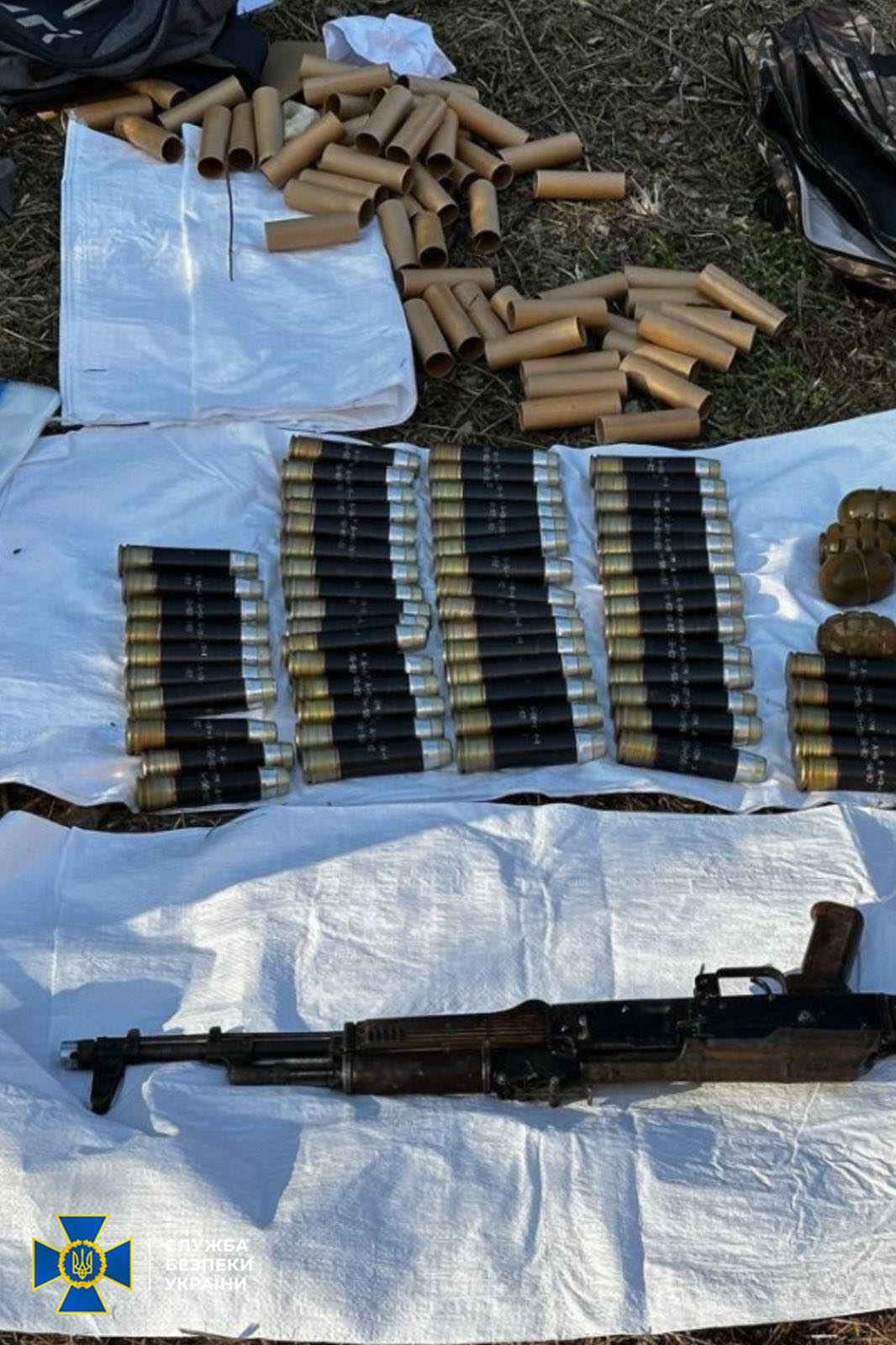 Один з фігурантів намагався продати криміналітету АК-74, більше 100 боєприпасів ВОГ-17м, 4 гранати РГД та Ф-1 із запалами. Його затримали “на гарячому”. Під час обшуку в його гаражі знайшли ще 60 боєприпасів ВОГ-17М.