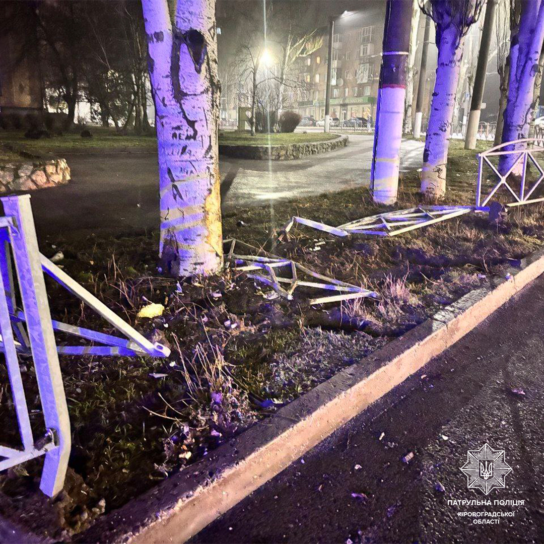 Ввечері 26 січня на вулиці Андрія Матвієнка у Кропивницькому водій протаранив паркан та загубив колесо, повідомили у патрульній поліції області.