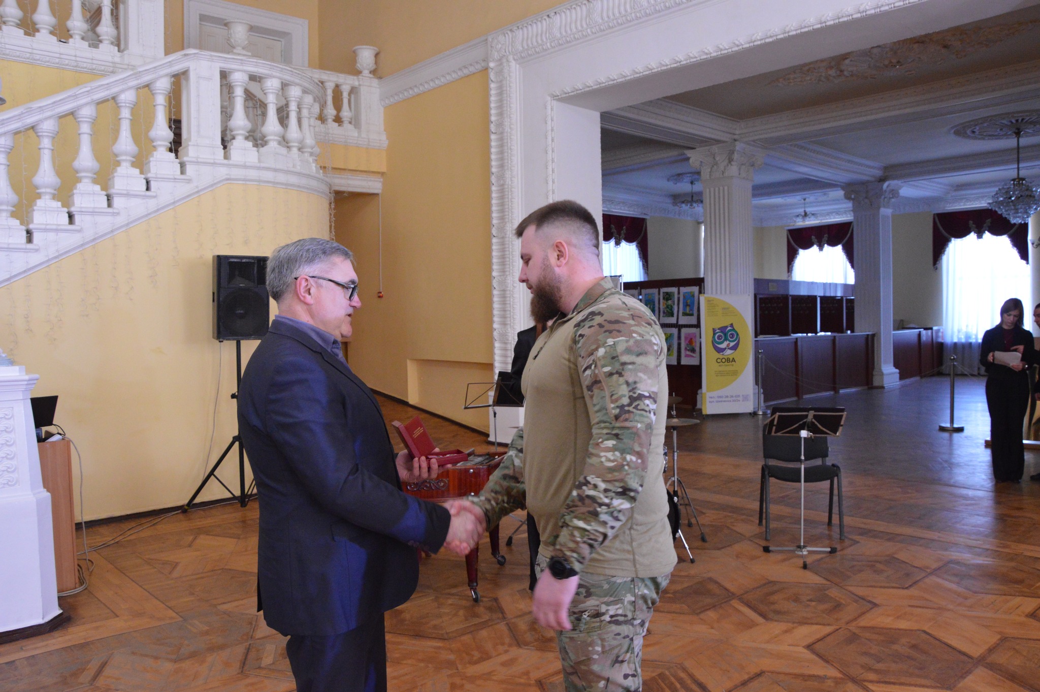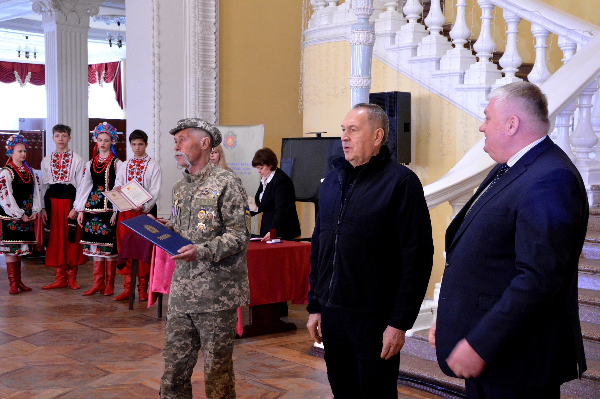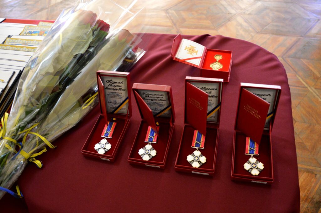 Захисників та захисниць привітали начальник ОВА Андрій Райкович та заступник міського голови Олександр Мосін, який вручив відзнаки міської ради та виконавчого комітету “Полум’яне серце”.