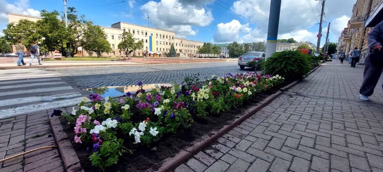 На клумбах по вулиці Великій Перспективній у Кропивницькому висадили квіти петунії.