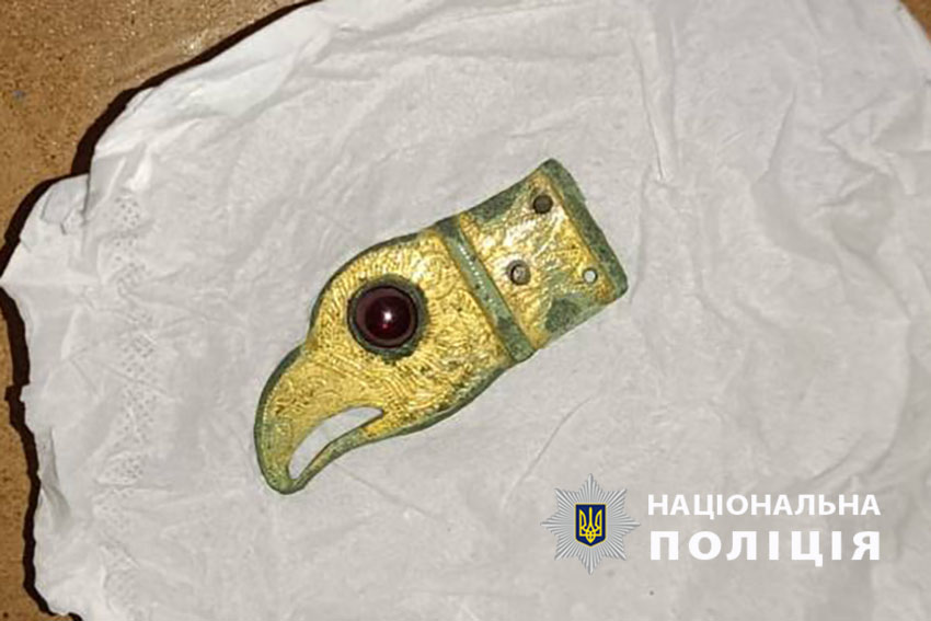 Оголошення про продаж артефактів знайшли на сайті для колекціонерів. Це були фрагмент браслету та золочене закінчення ременю у вигляді голови хижого птаха із вставкою з гранату.
